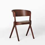 円形の座面、前後に開く脚、それを囲い込むアームと背板。この椅子を構成するすべてのパーツが座面横の一箇所で固定された構造のアームチェア。名前の「キーストーン」は、この全体を一点で支える「要」のこと。個性的な形でありながら、スタッキングも可能。